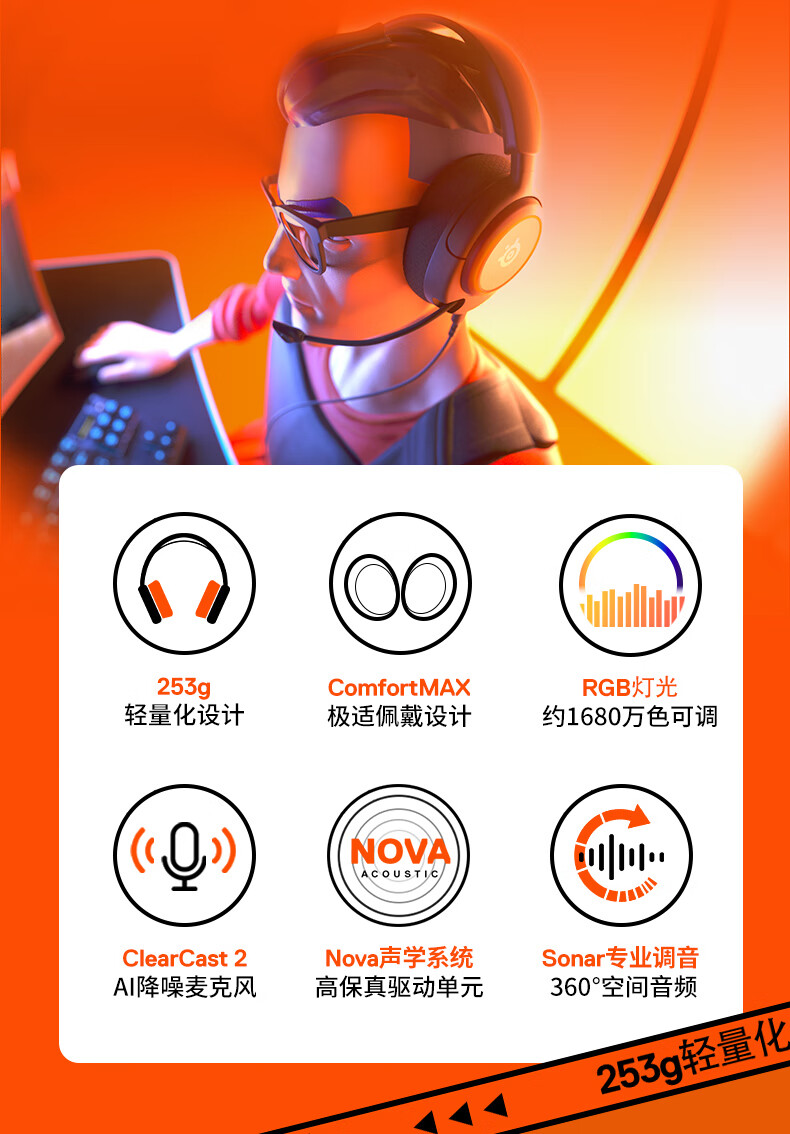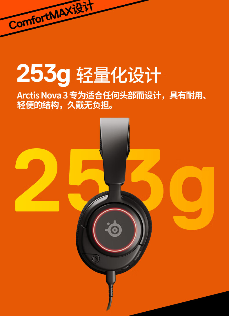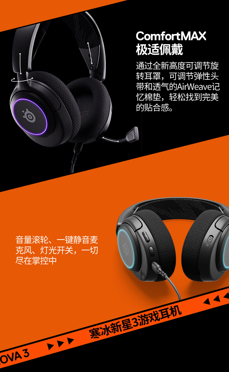 商品名称:赛睿(SteelSeries)寒冰新星Arctis Nova 3游戏耳机 电竞头戴式有线耳机寒冰5升级版 炫彩RGB灯效 轻量化253g