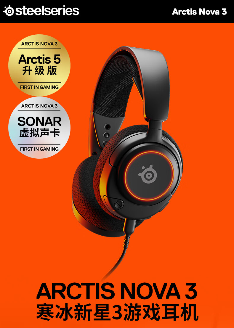 赛睿(SteelSeries)寒冰新星Arctis Nova 3游戏耳机 电竞头戴式有线耳机寒冰5升级版 炫彩RGB灯效 轻量化253g
