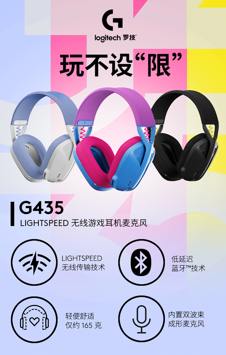 罗技(G) G435无线蓝牙游戏耳机耳麦电脑手机麦克风头戴式FPS 吃鸡听脚步定位 白色