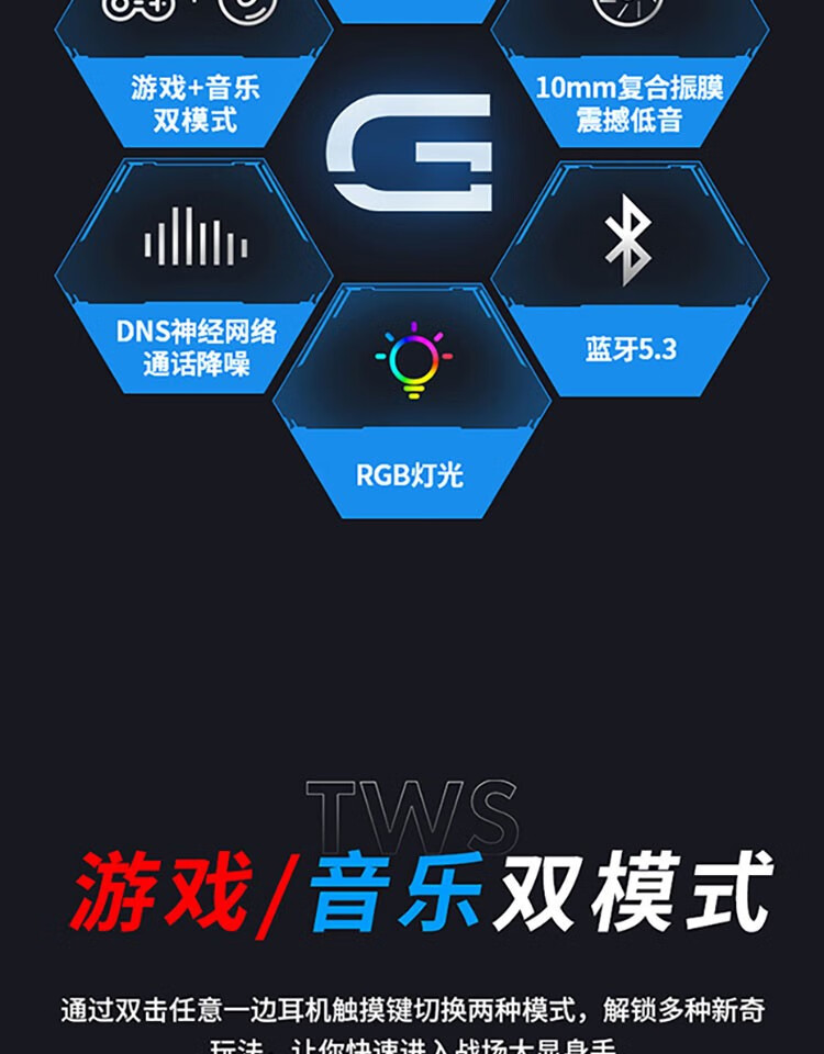 戴记严选 GT2323D TWS 真无线耳机 耳机蓝牙 入耳式游戏耳机 RGB灯效 黑色