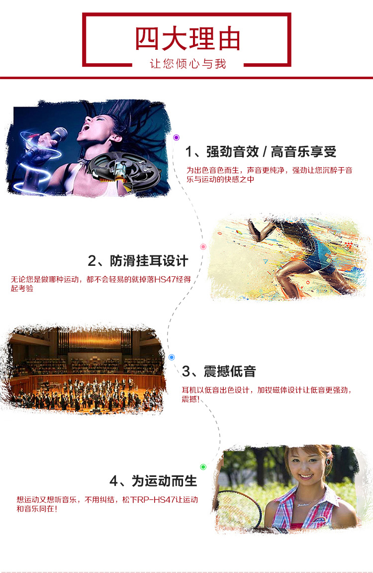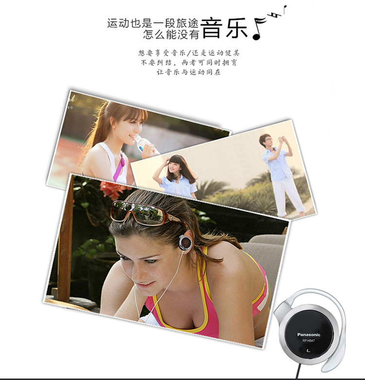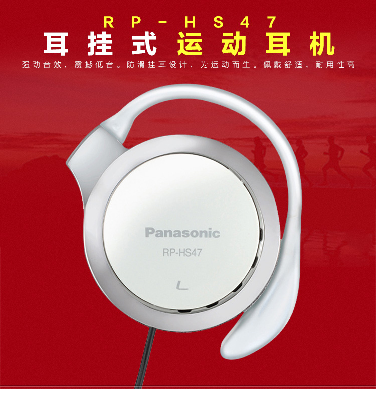 松下(Panasonic)重低音耳挂式耳机 RP-HS47GK-W1 防滑 运动耳机 白色