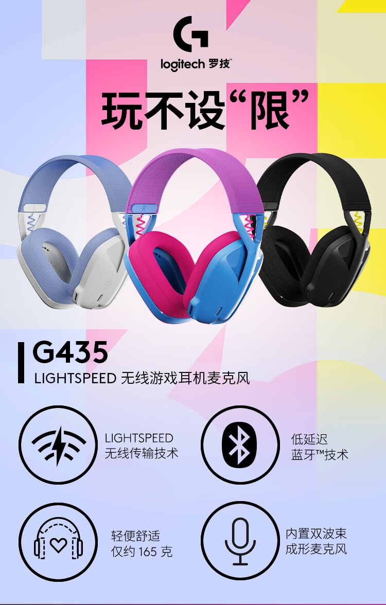 罗技(G)G435 无线游戏耳机头戴式 蓝牙耳机 电竞耳机 电脑耳机麦克风FPS吃鸡 PS主机手游 G435黑色