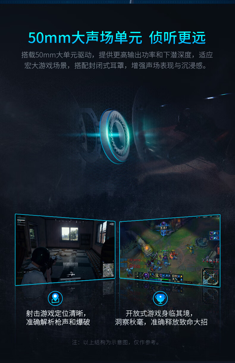 雷柏(Rapoo) VH160 有线耳机 虚拟7.1声道游戏耳机 USB电脑耳麦 电竞耳机 头戴式耳机 立体环绕声 黑色