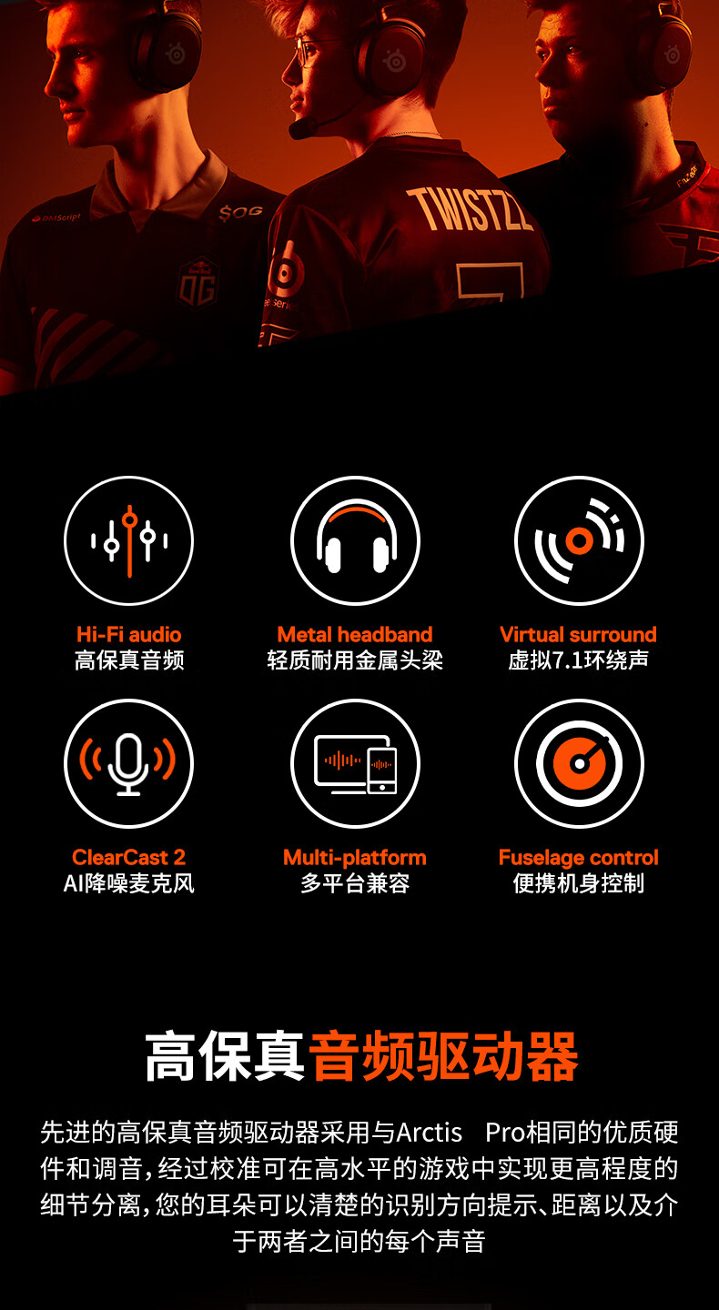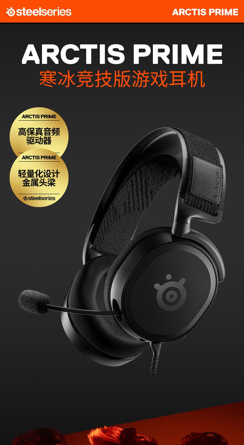 赛睿 (SteelSeries)Arctis Prime专业电竞游戏耳机 寒冰Prime 有线耳机 头戴式耳机 高保真音频 钢化轻量头梁