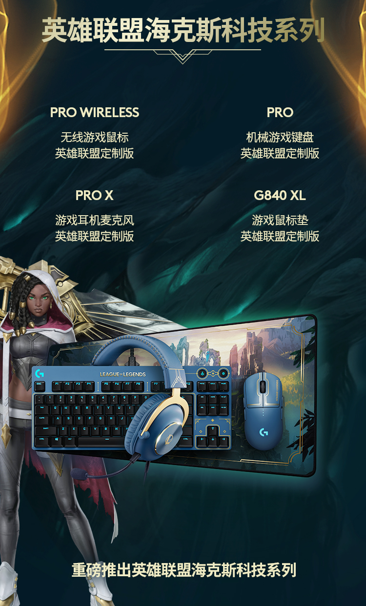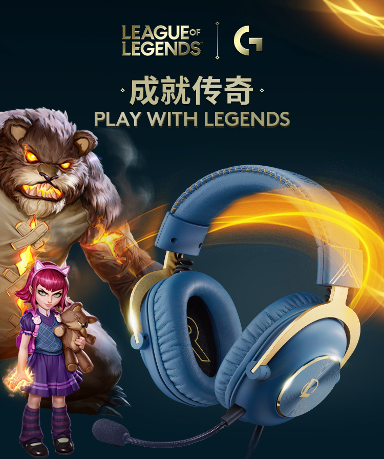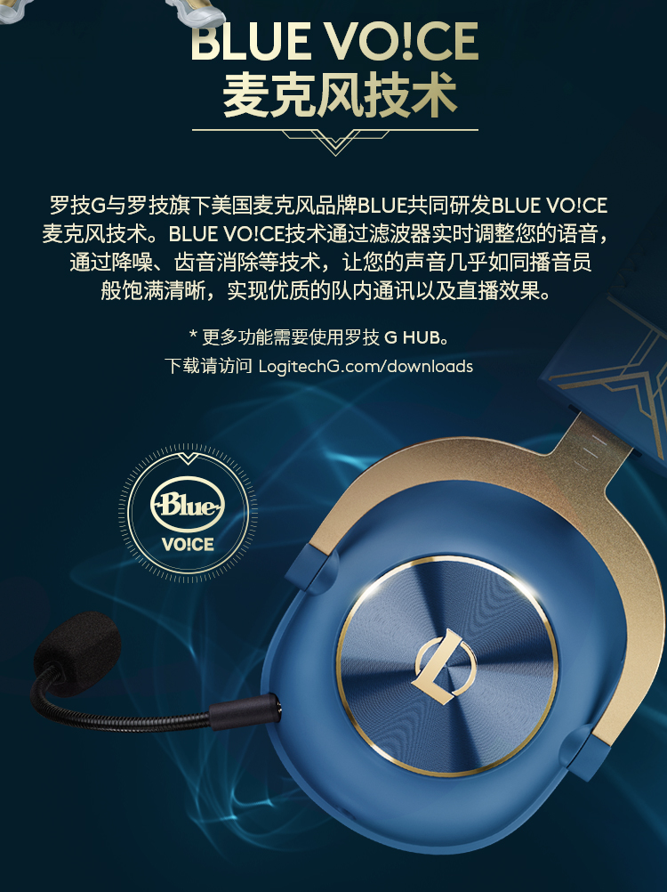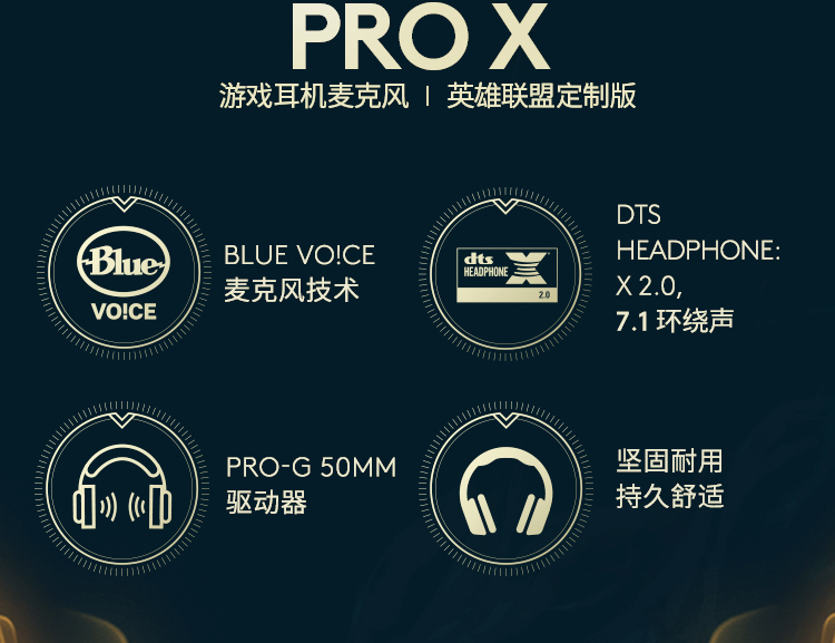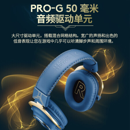 罗技(G) PRO X游戏耳机麦克风头戴式电竞耳机GPX7.1环绕声 电脑游戏prox海克斯耳机 英雄联盟海克斯定制尊贵蓝