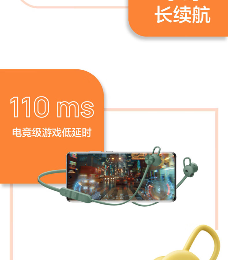 华为(HUAWEI)无线蓝牙耳机 freelace活力版 挂脖式 半入耳式 跑步运动降噪音乐耳机 云杉绿