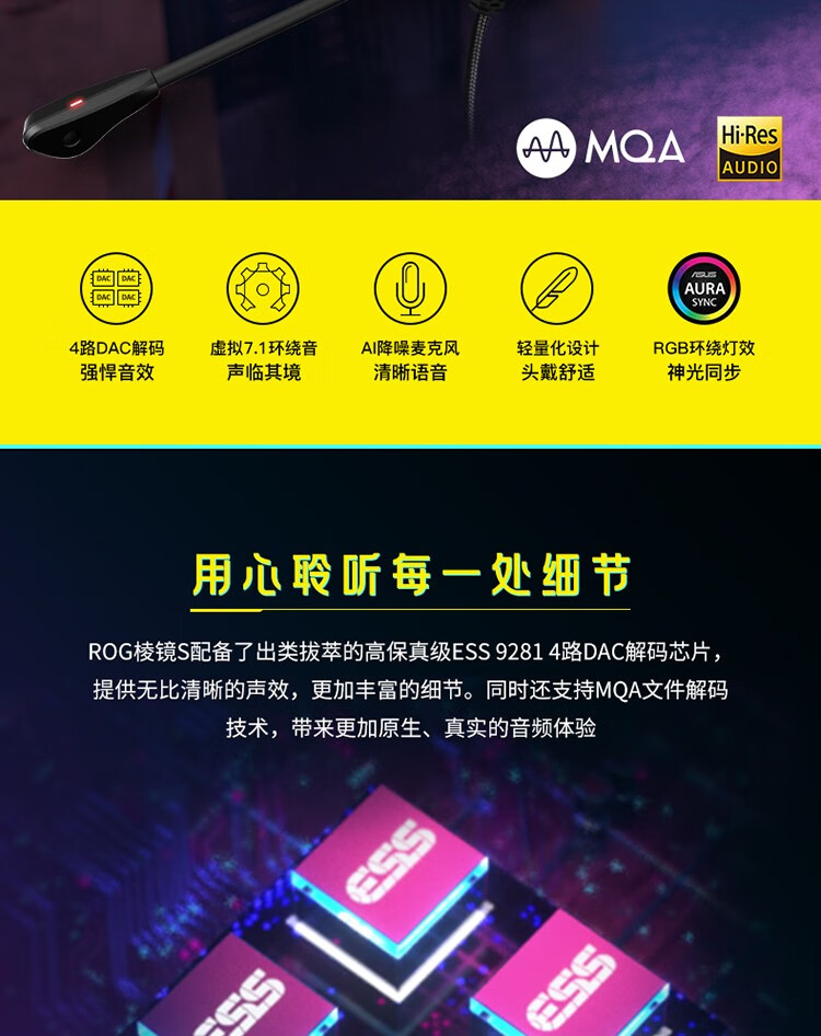 ROG棱镜白色限定版 游戏耳机 有线耳麦 ROG手机耳机 头戴式耳麦 带麦克风 环绕7.1音效 USB/TypeC接口