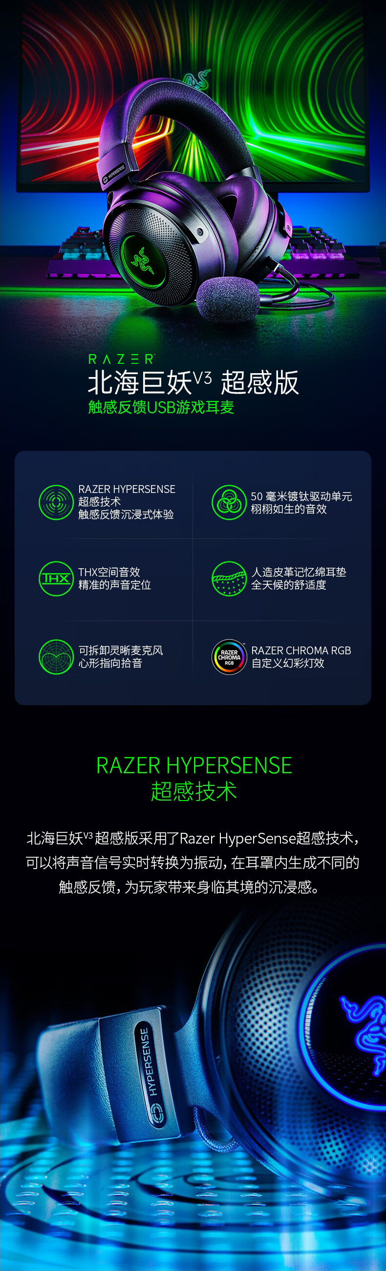 雷蛇(Razer)北海巨妖V3专业版Pro无线游戏耳机麦超感振动7.1环绕RGB 雷蛇北海巨妖V3超感版