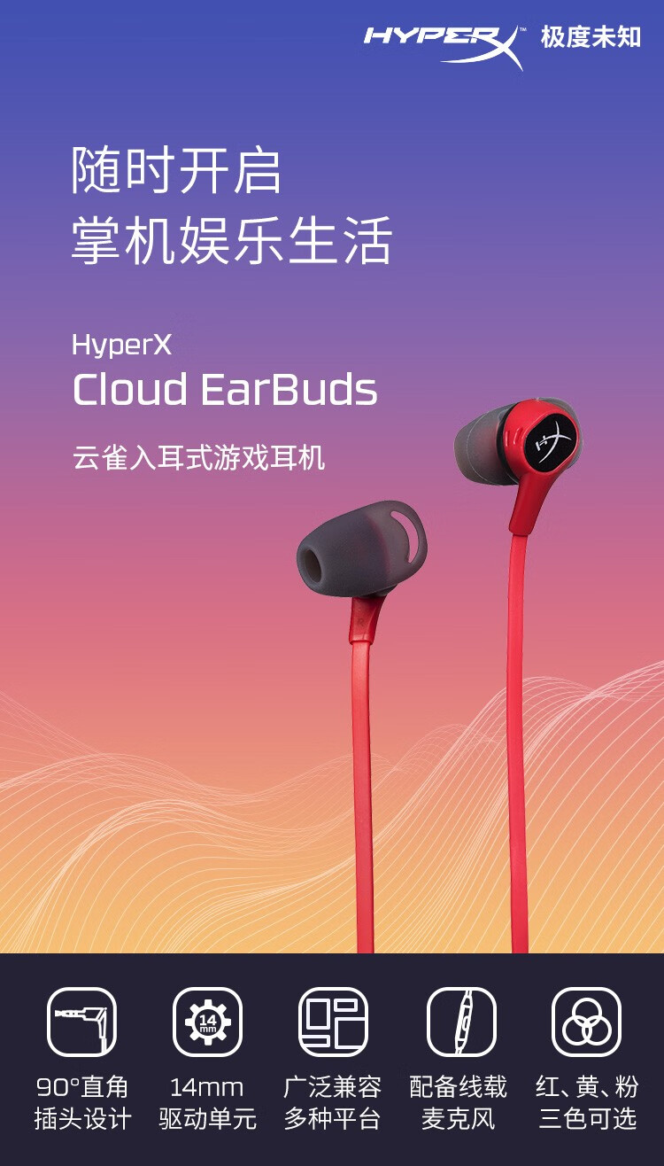 极度未知(HyperX)云雀/云雀2/天际云莺无线游戏耳机入耳式耳机灵音声卡电竞吃鸡听音辨位原金士顿 云莺-克莱茵蓝
