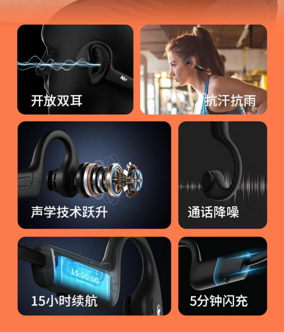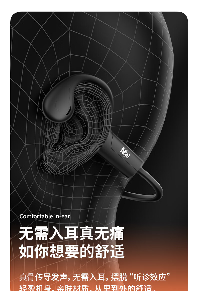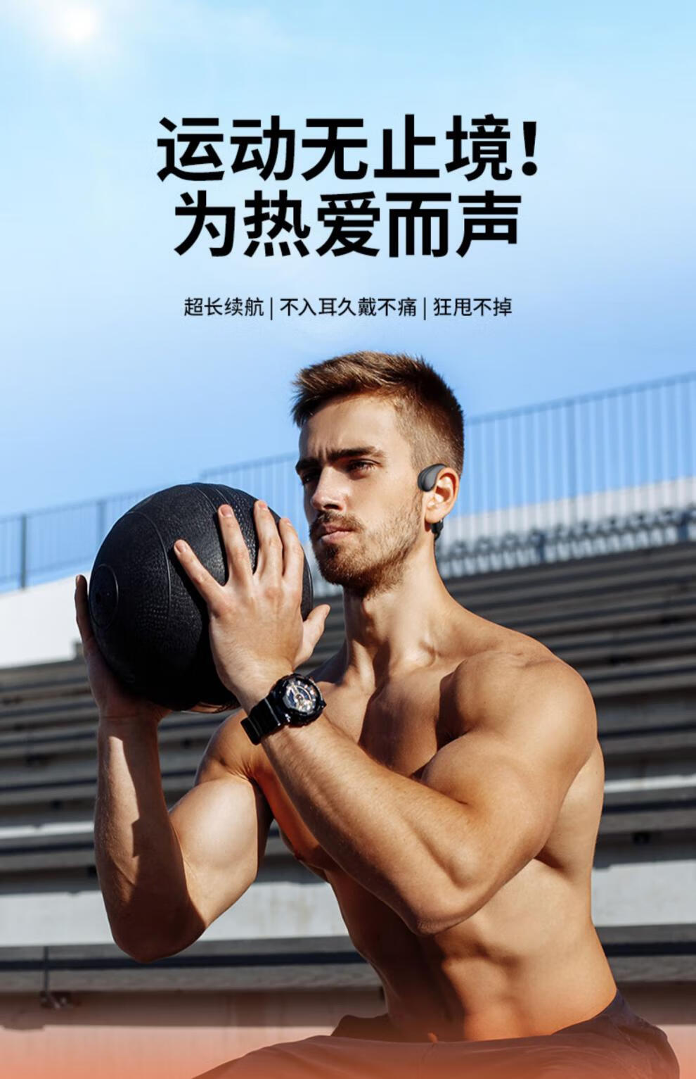 VT骨传导游戏耳机 蓝牙立体声运动跑步耳机 无线不入耳挂耳式骑行IPX6防水防汗 黑色