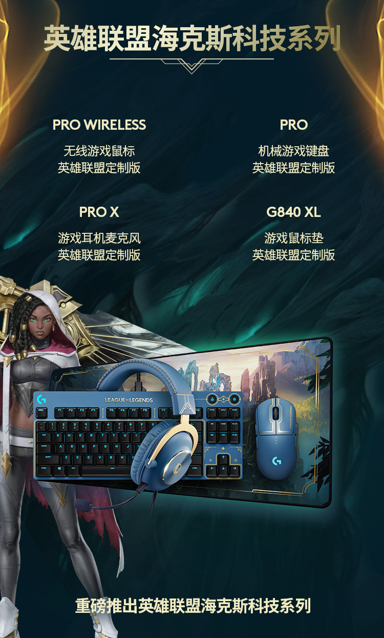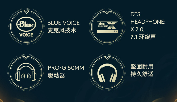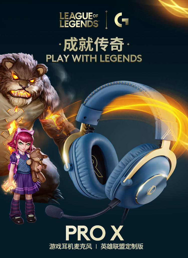 罗技(G) PRO X游戏耳机麦克风头戴式电竞耳机GPX7.1环绕声 电脑游戏prox海克斯耳机 英雄联盟海克斯定制尊贵蓝